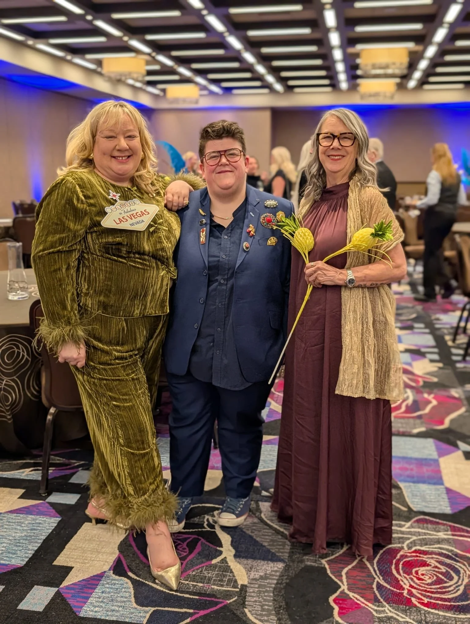 Dames Kate Howell, Jen Greenhalgh and Cathy Sloman in full Vegas mode