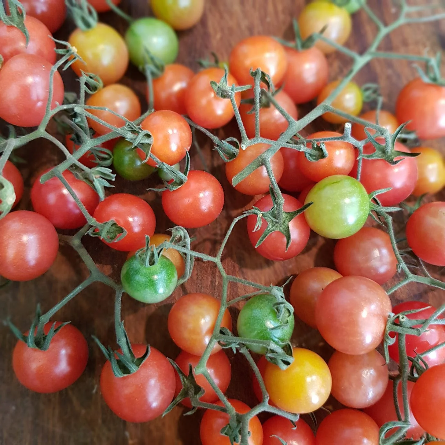And so it was one evening, that I found myself stripping my vine ripened cherry tomatoes to make a rich but simple pasta sauce. While I might usually reach for a stock or a glug of red wine, we had a half bottle of cider yearning to be used. A single variety Harry Masters Jersey, bottled and corked pet nat, with a bright acidity and a tingle of residual sweetness. After some personal hydration, it bolstered the tomato sauce beautifully, rick and silky smooth, it made a perfect dinner after a long day harvesting.